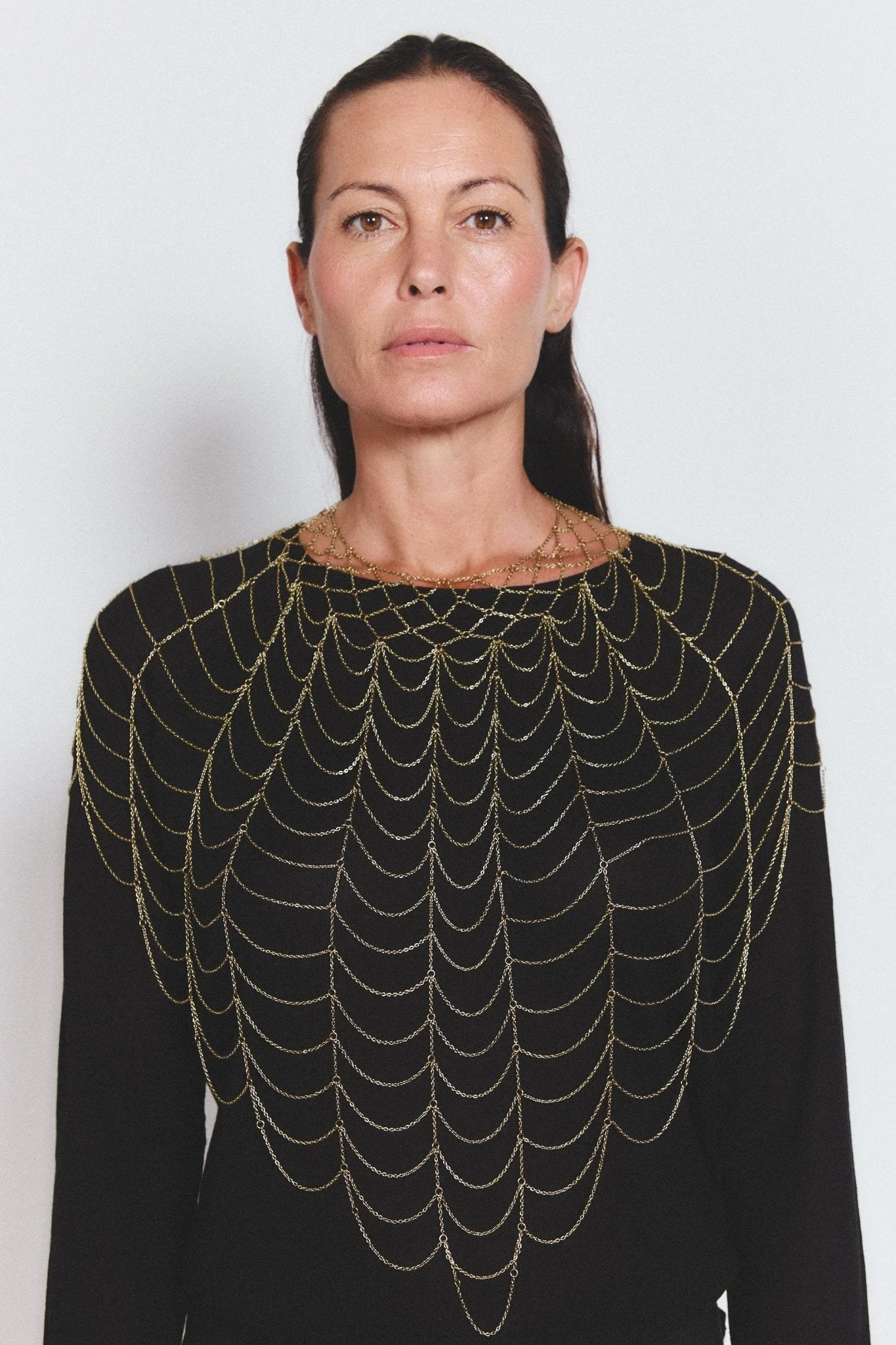 Pieza artesanal que destaca no solo por su diseño único y original, si no por su peso ligero y delicadeza. Esta joya única realizada a mano de cadenas engarzadas una a una inspirada en las ondas del agua es perfecta para cualquier ocasión.