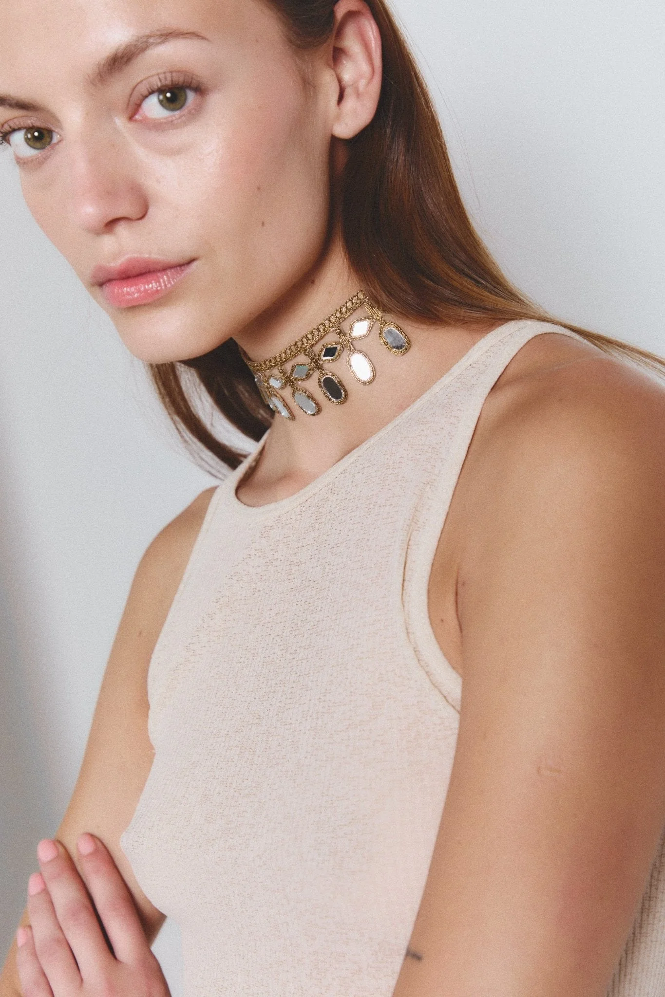 Pieza artesanal que destaca no solo por su diseño único y original, si no por su peso ligero y delicadeza. Esta joya única realizada con espejos, atrapa la luz e ilumina cada paso creando un juego hipnotizante de reflejos. ¡Deslumbra en cualquier ocasión!