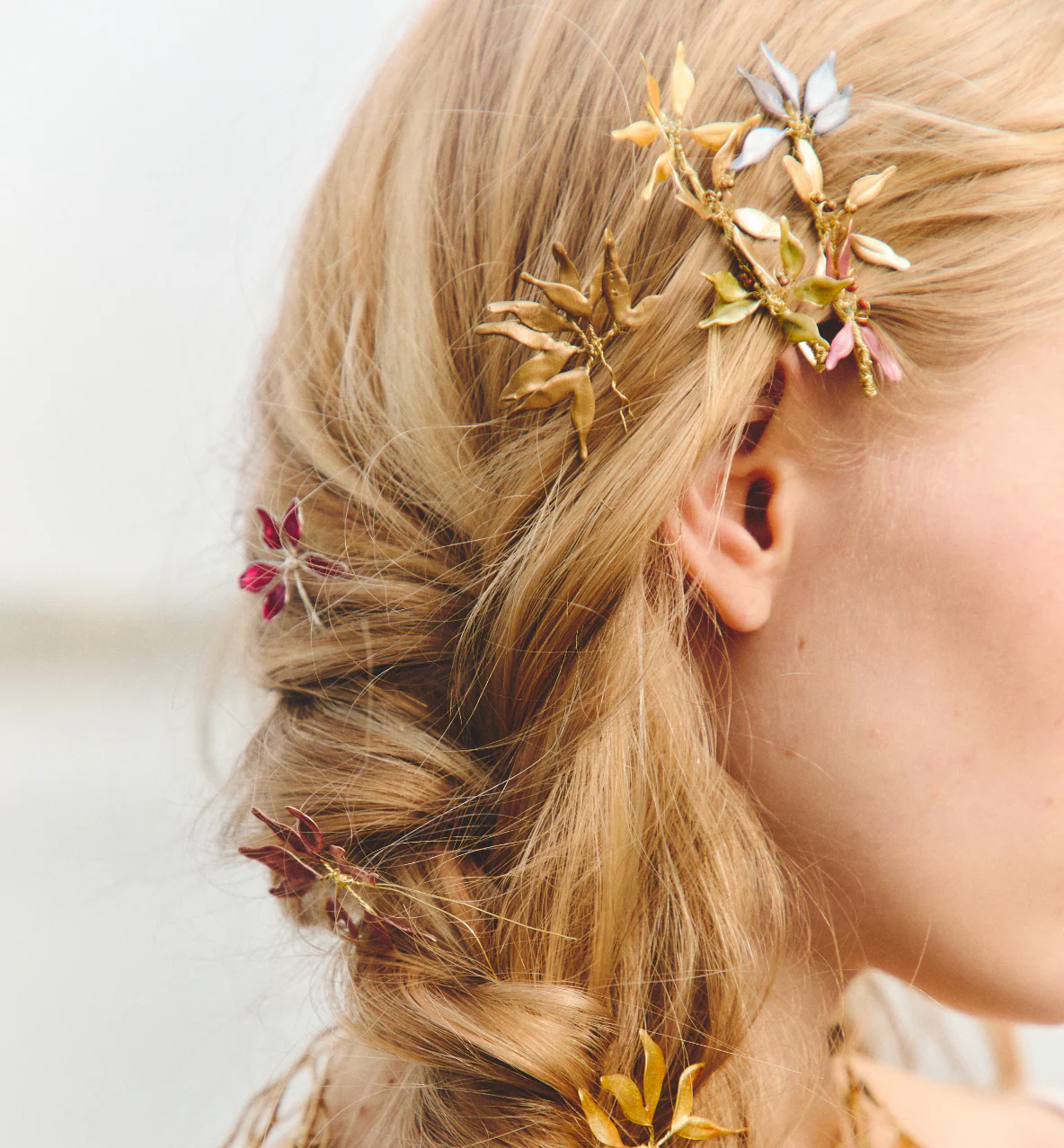 Materiales: Hilo de alpaca en latón y cobre con baño de oro. Capas infinitas creadas a través de un minucioso proceso de superposición de barnices y tintes que aportan profundidad y color. Detalles con piezas de cristal checo, strass y abalorios cuidadosamente seleccionados.